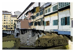 Ponte Vechio is based on one of my photos taken from the north bank of the Arno, looking west.