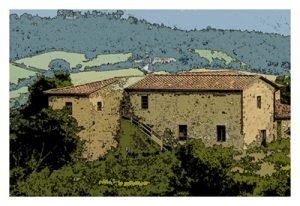 Tuscany Shack is product of a happy accident. When we headed out from Florence to our bed and breakfast up in the mountains near Radicondoli, Il Bel Canto, our Italian guide at the wheel confessed to us that she had not driven a standard transmission car for some time and much less on steep inclined tight curves like the ones we dove in with gusto. That and her copilot’s  malfunctioning GPS, which had to be held up in a specific position or the power cord would lose contact and start re-booting from scratch, made for a hilarious ride with them engaging in shouting matches where the copilot tried in her own way to calm down the driver and the driver cursing in Italian something that had to do with ‘puta’ and ‘merda’ that I was not able to make out but she kept repeating like a mantra. But those two words I knew what they meant.