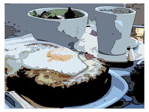 My traveling friend, having been to Paris before, recommended the Croque Madame . Looking at the menu I discovered there was also a Croque Monsieur. I asked the waiter what was the difference. He responded with feigned impatience and a sly smile “Ma, monsieur, le Croque Madame has ze egg on top!”
