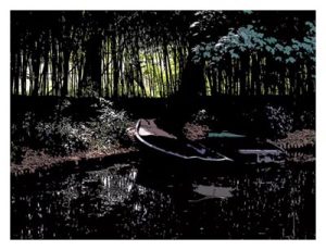 I developed the digital design series Postcards from the Darklands in 2016 for a poem book of the same title by Gainesville poet Jimmy Fishshawk. It consisted of ten digitally altered versions of photos I took in my travels through France and Italy. We aimed to reference (not reproduce or imitate) vintage postcards from back when friends sent short notices to loved ones trying to invite them into their experience by pulling them for a moment inside a glimpse of their surroundings. We printed the series in a 30” X 20” format to hang at the book presentation at the Gainesville Civic Media Center.