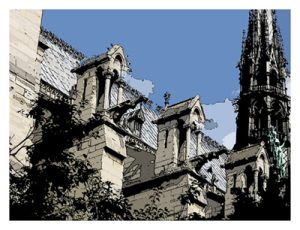 Notre Dame is based on one of my photos of Notre Dame’s gargoyles.